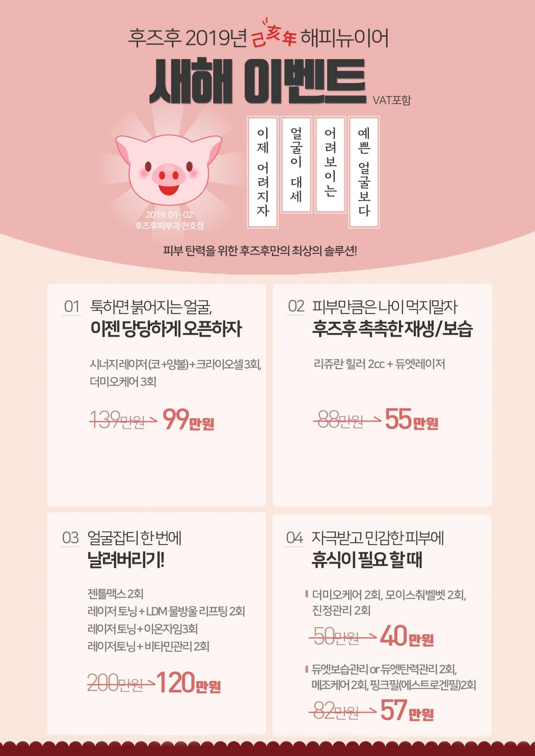 2019 후즈후피부과 새해맞이 01월 02월 이벤트 페이지 정보 작성자 최고관리자 작성일19-01-03 16:19 조회1,576회 댓글0건 관련링크 이전글 다음글 목록 본문 댓글목록 등록된 댓글이 없습니다. 이전글 다음글 목록