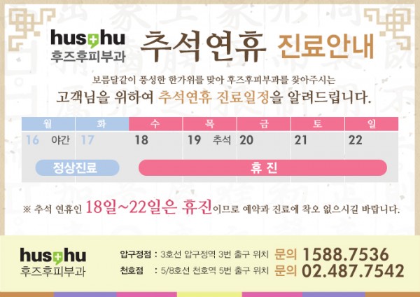 [공지] 추석연휴 진료일정 안내 페이지 정보 작성자 관리자 작성일13-08-22 12:06 조회2,881회 댓글0건 관련링크 이전글 수정 삭제 목록 본문 댓글목록 등록된 댓글이 없습니다. 이전글 수정 삭제 목록