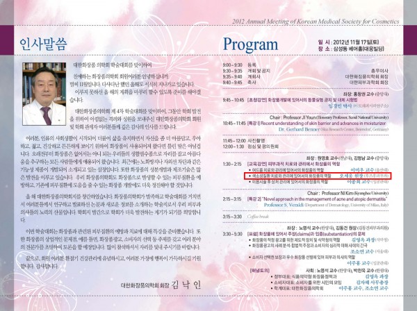 오세웅 원장님 대한화장품의학회 발표! 페이지 정보 작성자 관리자 작성일12-11-20 18:46 조회2,384회 댓글0건 관련링크 이전글 수정 삭제 목록 본문 후즈후피부과 오세웅 원장님께서 지난 17일 삼성동에 위치한 베어홀에서 개최한 2012년 대한화장품의학회 교육강연 세션"색소성 질환 치료와 관리에 있어서의 화장품의 역할"에 대해 발표하셨습니다. 댓글목록 등록된 댓글이 없습니다. 이전글 수정 삭제 목록